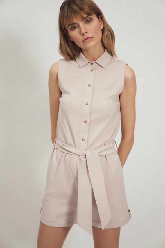 Beżowy kombinezon bez rękawów KM22 Beige - Nife