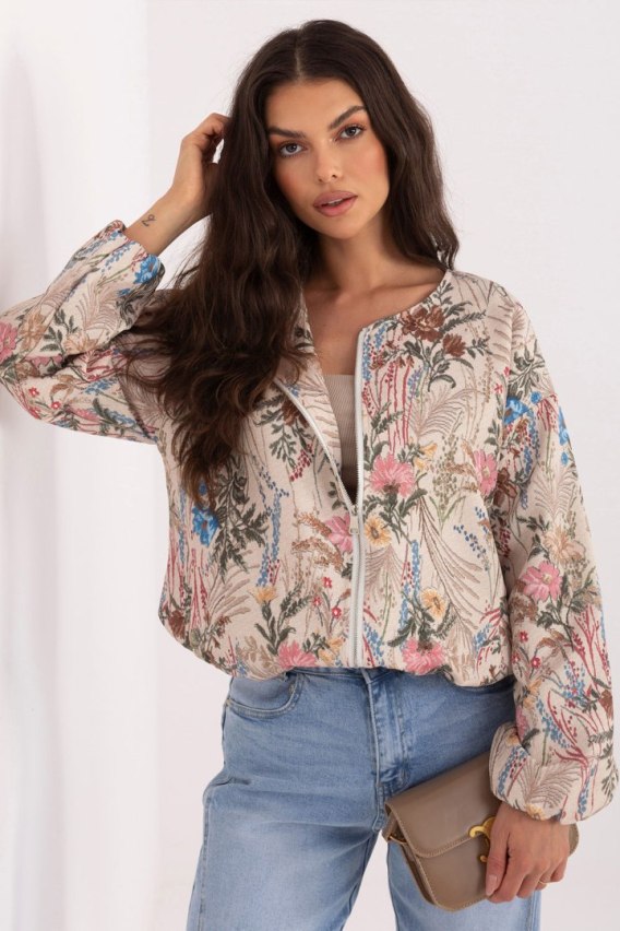 Modna kurtka damska typu bomber, idealna na sezon wiosna/lato. Zaprojektowana w casualowym stylu, świetnie sprawdzi się w codziennych stylizacjach, dodając im lekkości i kobiecego charakteru. Model wyróżnia się efektownym nadrukiem w kwiaty, który przyciąga uwagę i wpisuje się w aktualne trendy. Kurtka wykonana jest z wysokiej jakości mieszanki poliestru z dodatkiem elastanu, dzięki czemu jest wygodna, lekka i dobrze dopasowuje się do sylwetki. Nie posiada ocieplenia ani wypełnienia, co czyni ją idealnym wyborem na cieplejsze dni. Bomber ma standardową długość, długie, lekko bufiaste rękawy oraz praktyczne kieszenie wsuwane. Zapięcie na zamek zapewnia wygodę użytkowania, a brak kaptura i kołnierza podkreśla jej minimalistyczny, nowoczesny charakter. Dodatkowa podszewka zwiększa komfort noszenia i estetykę wykończenia. To doskonała propozycja dla kobiet ceniących wygodę i styl, świetnie komponuje się zarówno z jeansami, jak i sukienkami czy spódnicami.
