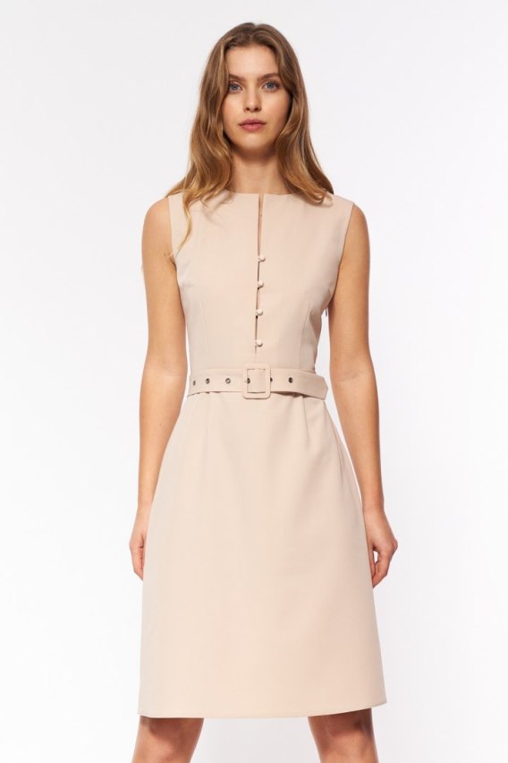 Sukienka Beżowa elegancka sukienka bez rękawów S200 Beige - Nife