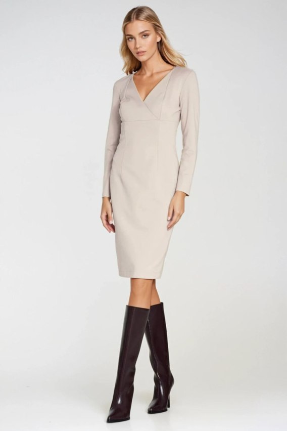Sukienka z kopertowym dekoltem S276 Beige - Nife